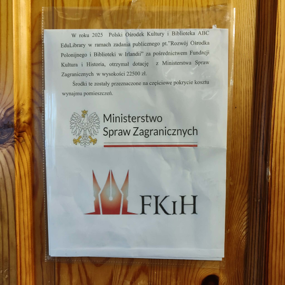 Kolejny rok realizacji naszego projektu w Irlandii pt. "Rozwój Ośrodka Polonijnego i Biblioteki w Irlandii" dzięki stałemu dofinasowaniu Projektu przez Ministerstwo Spraw Zagranicznych w ramach działania Polonia i Polacy za Granicą 2024-Media i Struktury, umożliwia utrzymanie lokalu Ośrodka Polonijnego i Biblioteki, który przez cały rok pełni funkcję otwartego centrum kultury polskiej. Ośrodek jest dostępny dla odbiorców kilka dni w tygodniu, w tym również w wybrane niedziele.