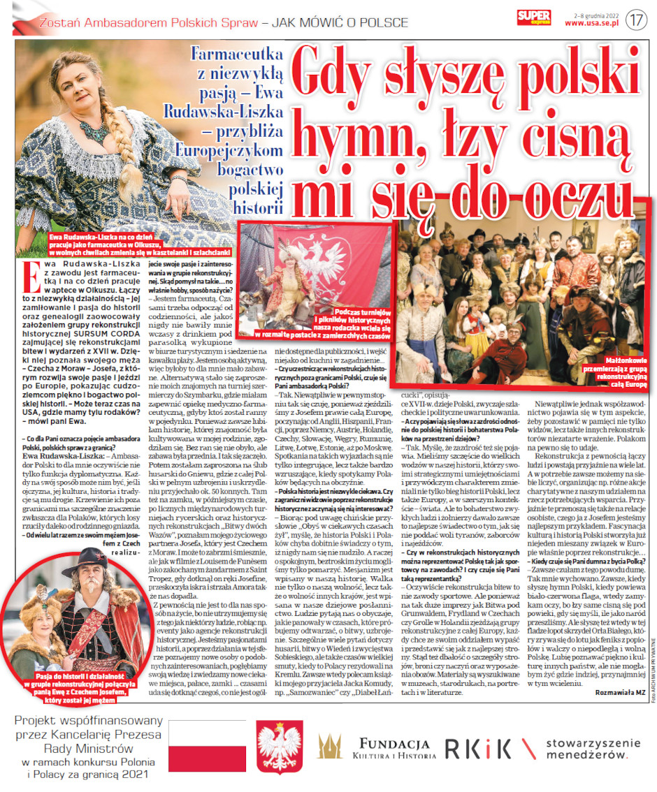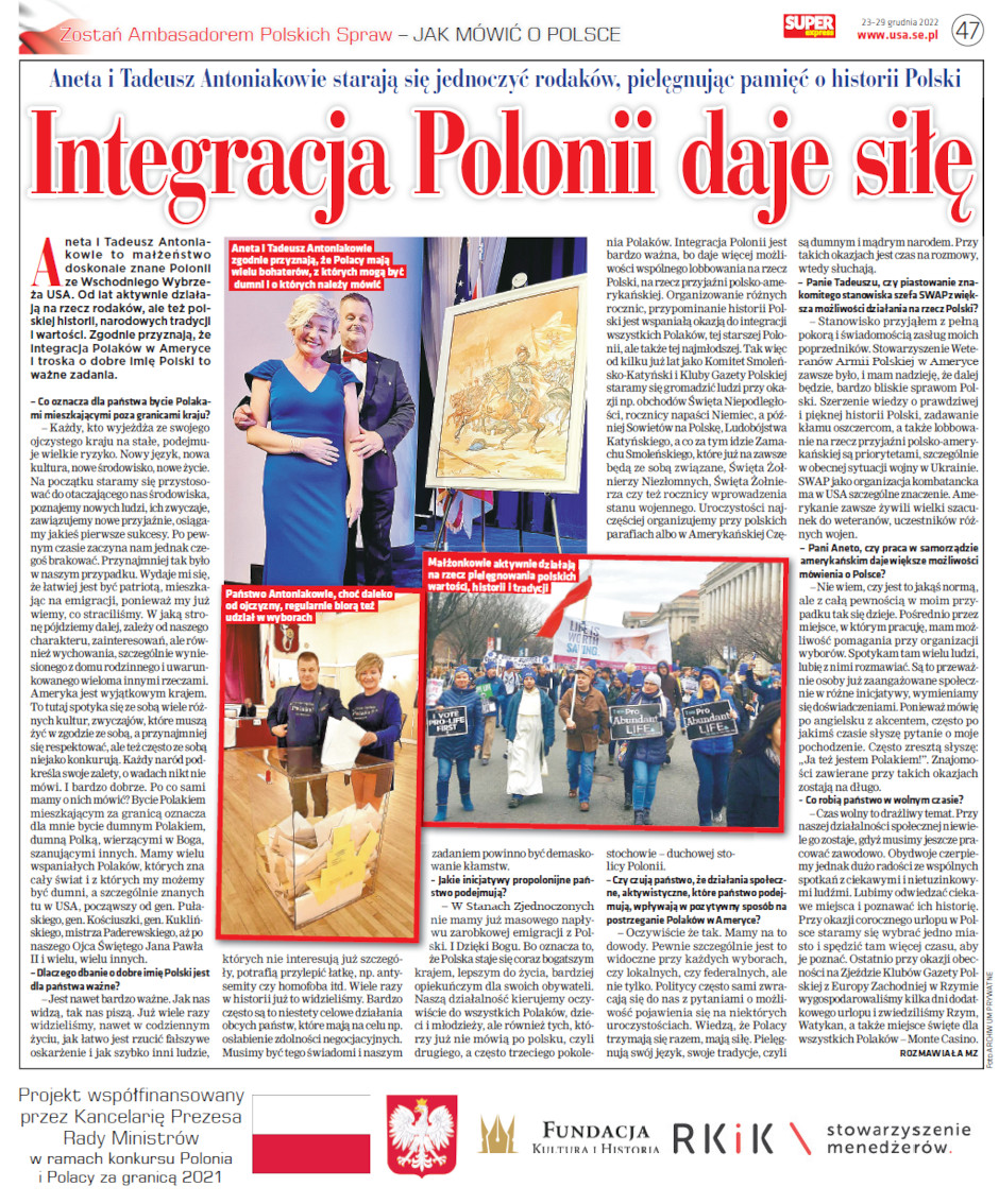 Fundacja Kultura i Historia wspólnie z Super Express Nowy Jork oraz Super Express Chicago oraz Stowarzyszeniem Menadżerów RKiK realizuje dwuletni projekt polegający na publikacji artykułów dotyczących Historii Polski (od 1.01.2021 do 31.12.2022). Projekt finansowany jest ze środków Kancelarii Prezesa Rady Ministrów w ramach konkursu Polonia i Polacy za granicą 2021, odbiorcą projektu jest Polonia amerykańska.
